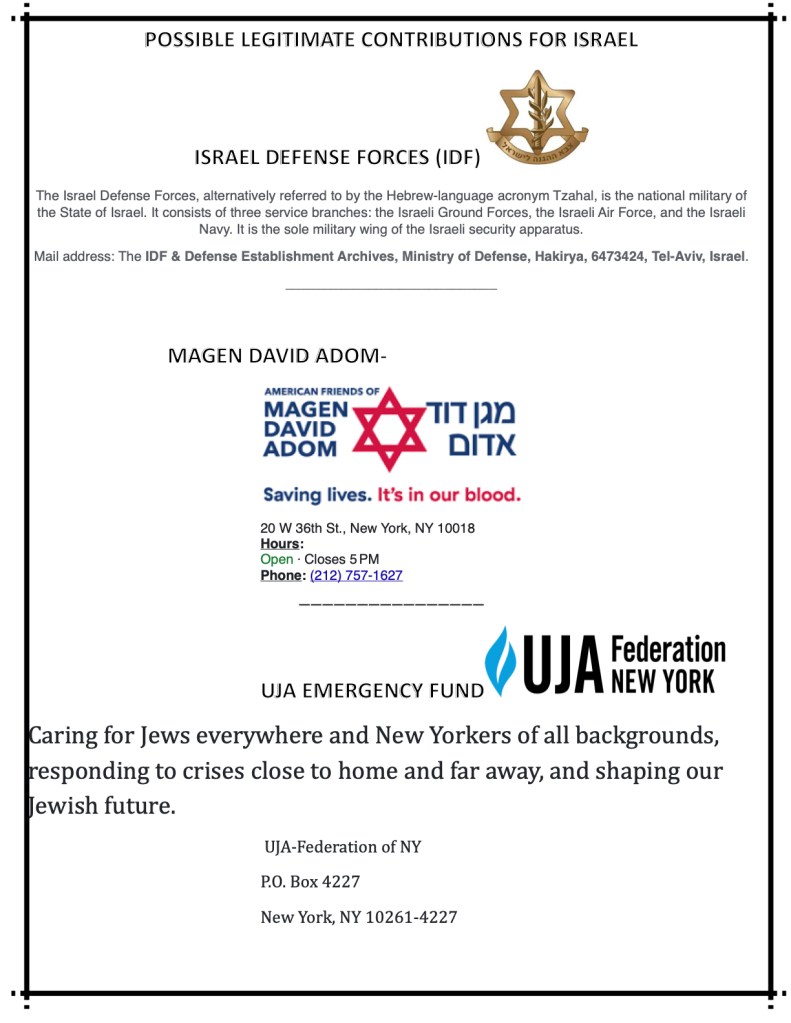 Many friends and members have asked for organizations they can contribute to that are trying to bring the hostages home safely, and are supporting families directly and indirectly affected by the attacks. Here are a few organizations you may consider: